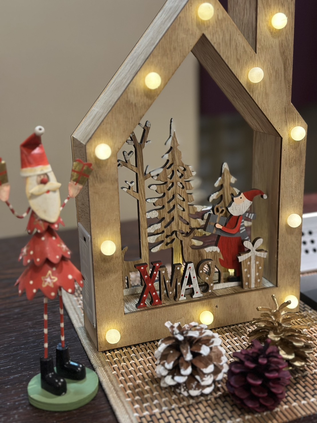 外は凛とした空気に包まれていますが、館内ではほのかな明かりと木の温かみが重なり合い、穏やかなクリスマスの気配が静かに広がっています。