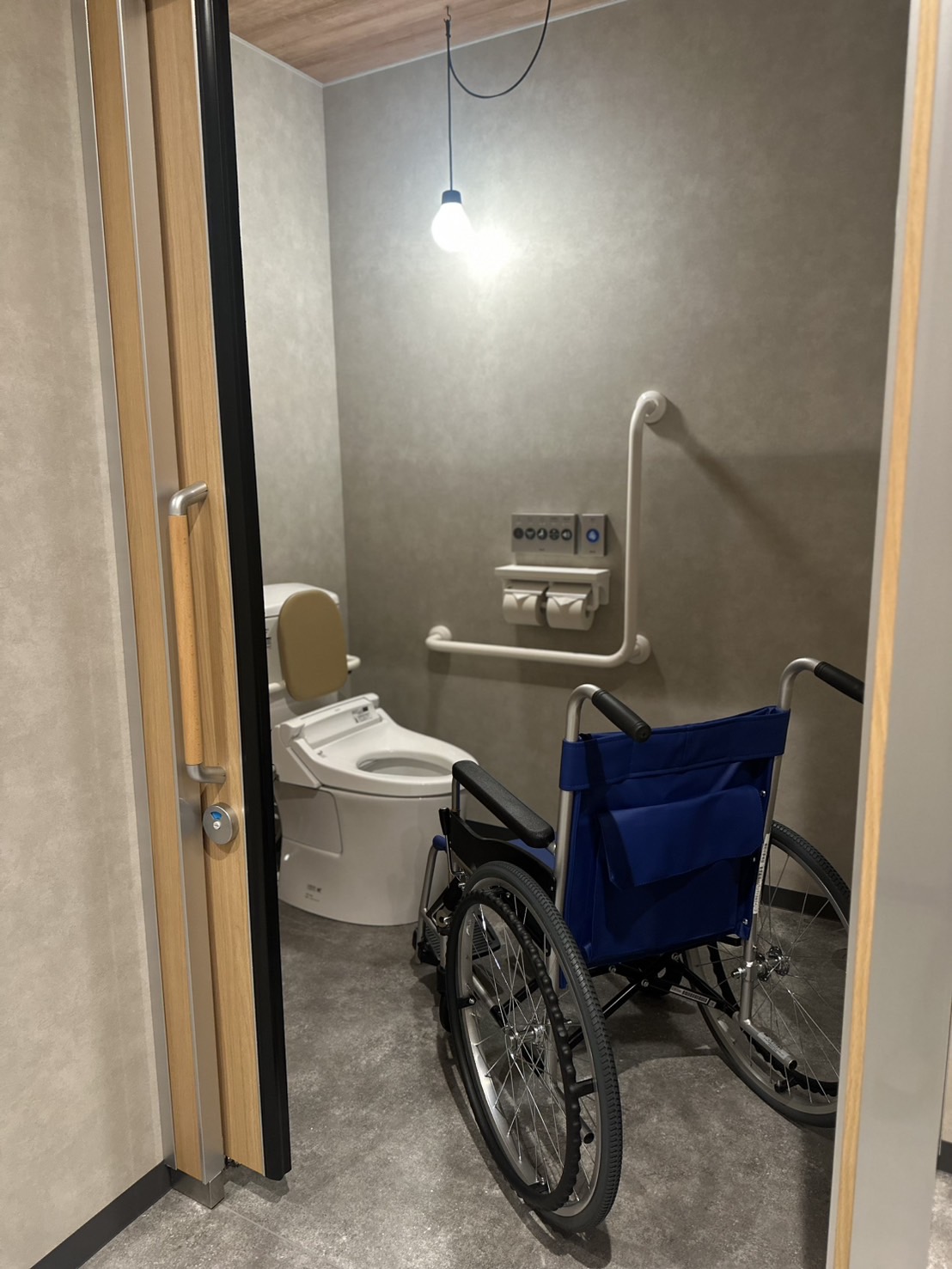 車椅子をご利用のお客様も、そのままトイレ内まで安心してお入りいただける造り となっております。